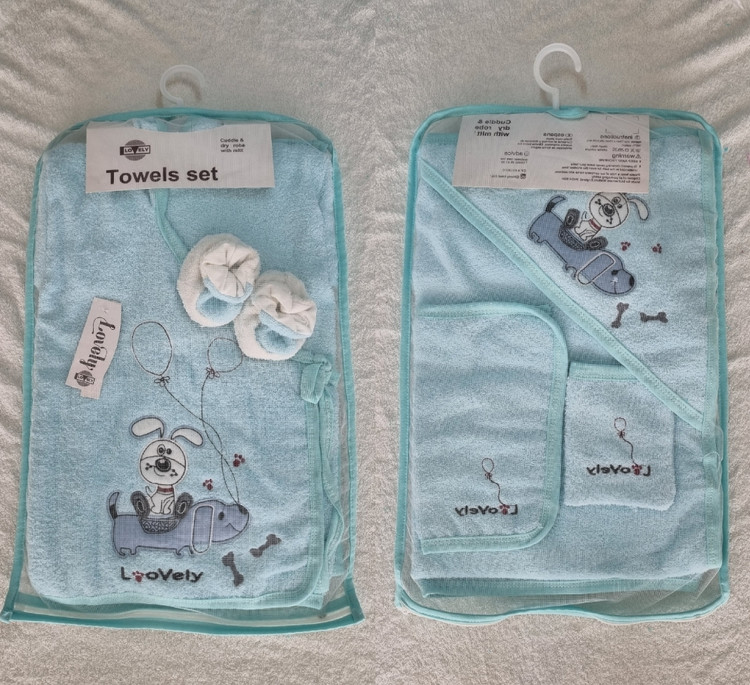 حوله نوزادی 5 تکه رنگ آبی طرح لاولی شامل: