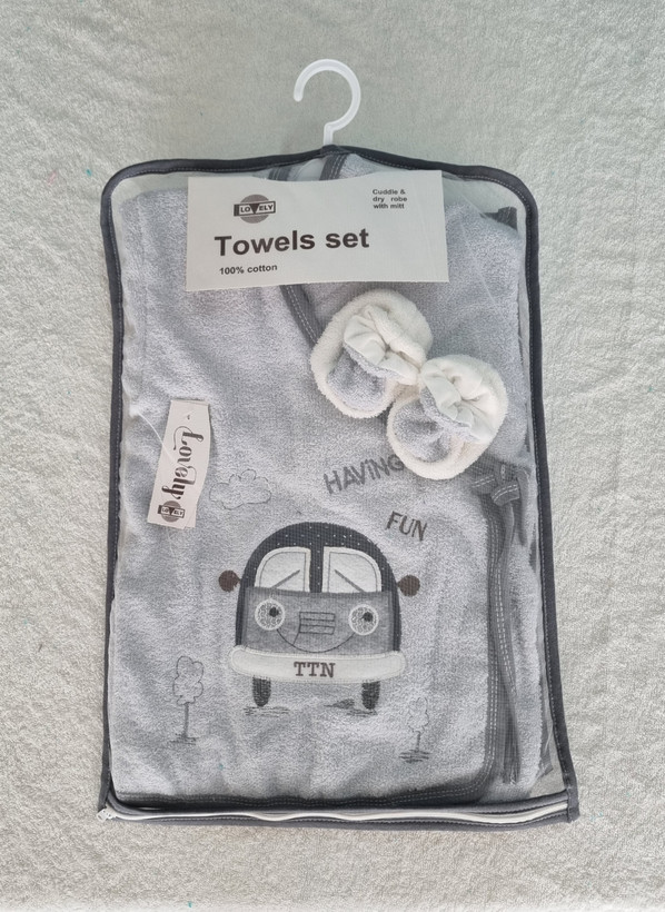 حوله نوزادی 5 تکه رنگ طوسی طرح رایلی شامل :