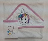 حوله نوزادی 2 تکه رنگ سفید طرح یونیکورن شامل :