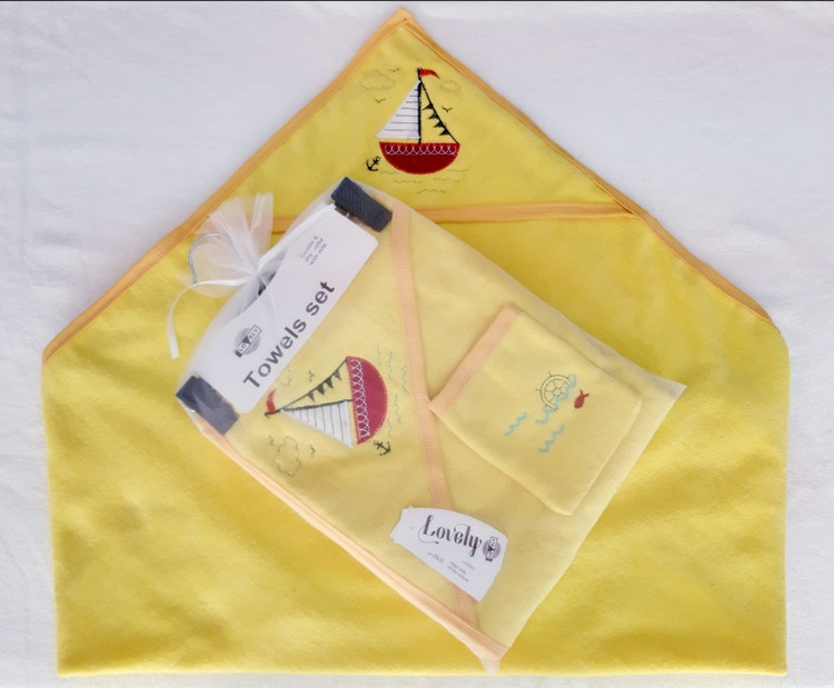 حوله نوزادی 2 تکه رنگ زرد طرح قایق شامل :