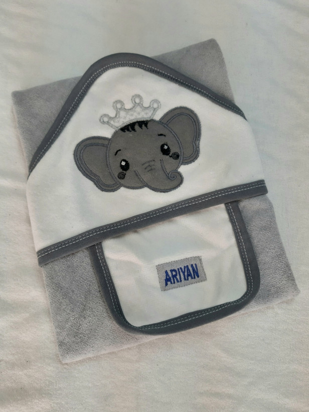 حوله نوزادی 2 تکه اسپورت رنگ طوسی طرح فیل شامل: