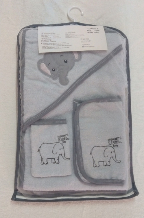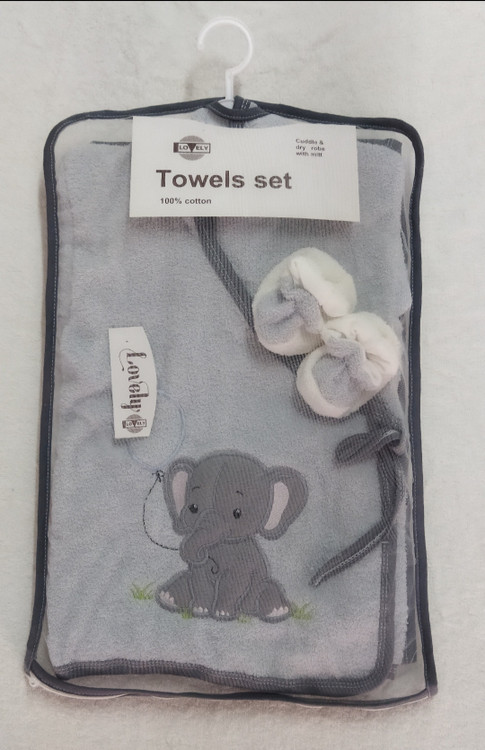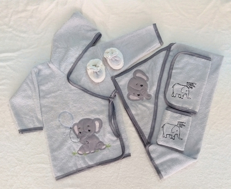 حوله نوزادی 5 تکه طرح فیل رنگ طوسی شامل: