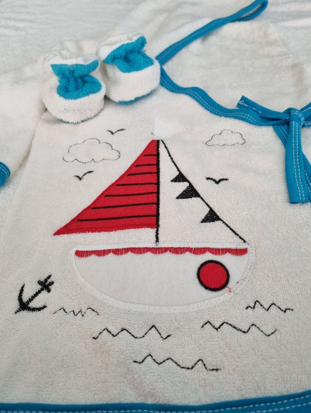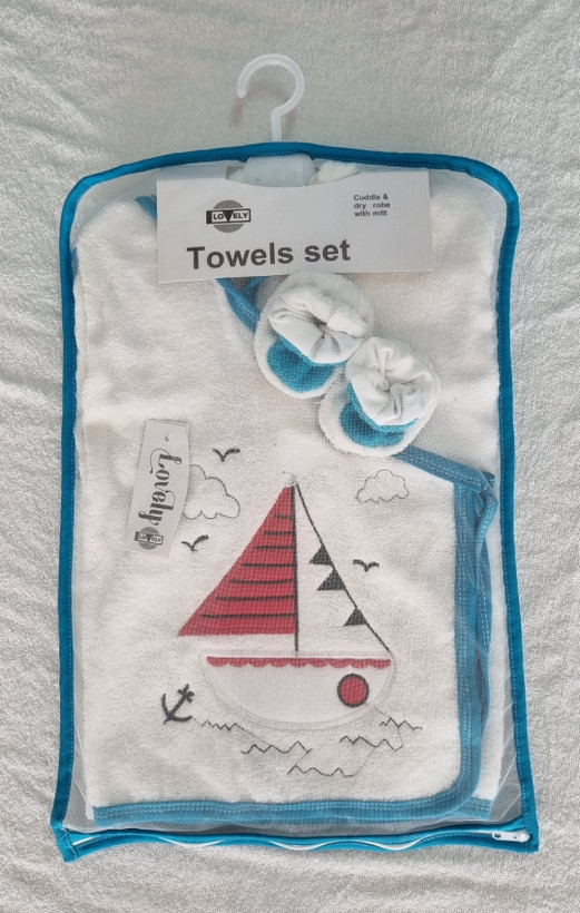 حوله نوزادی 5 تکه پسرانه رنگ سفید طرح قایق شامل: