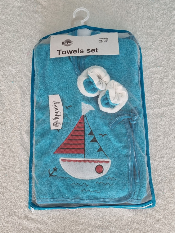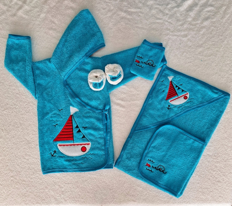 حوله نوزادی 5 تکه پسرانه رنگ آبی طرح قایق شامل: