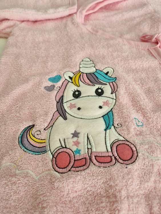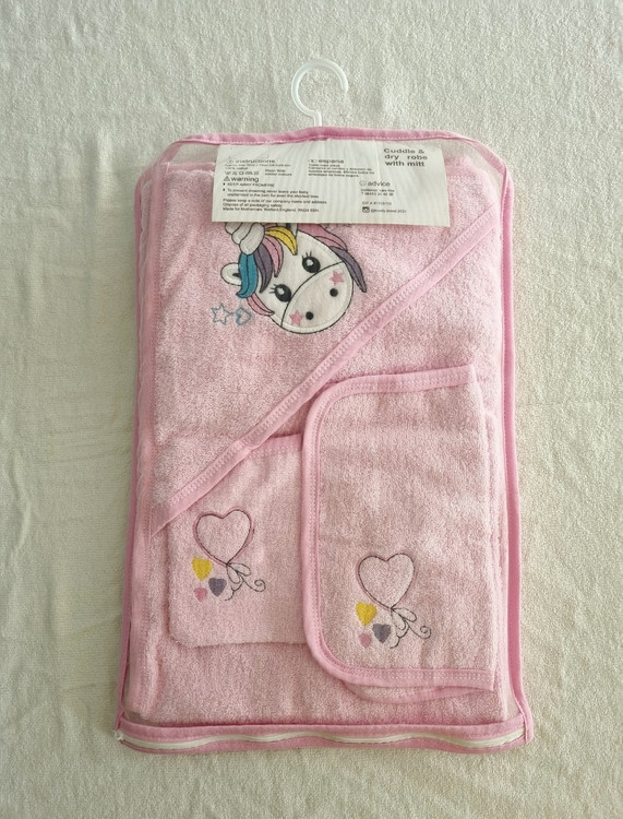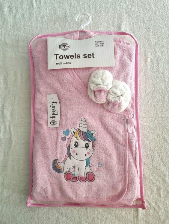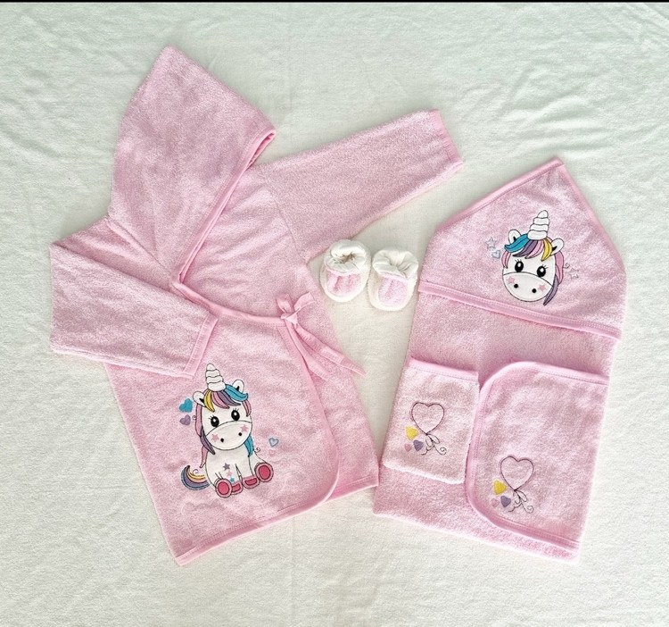 حوله نوزادی 5 تکه دخترانه رنگ صورتی طرح یونیکورن شامل: