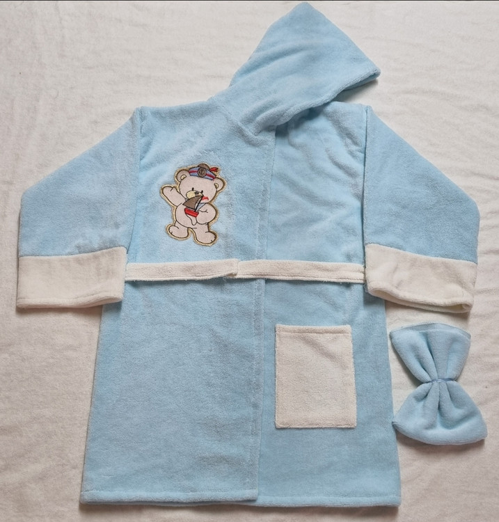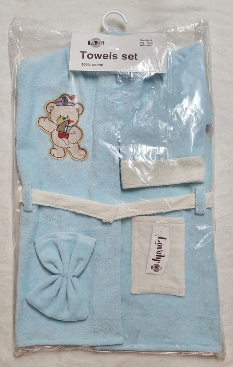 حوله 2 تکه پسرانه طرح خرس پوما رنگ آبی شامل: